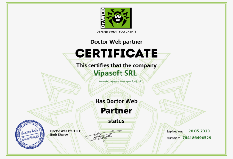 Vrem să ne lăudăm puțin și să împărtășim veștile! Vipasoft a primit statutul de partener al Dr.Web!? Referință rapidă: Dr.Web ...